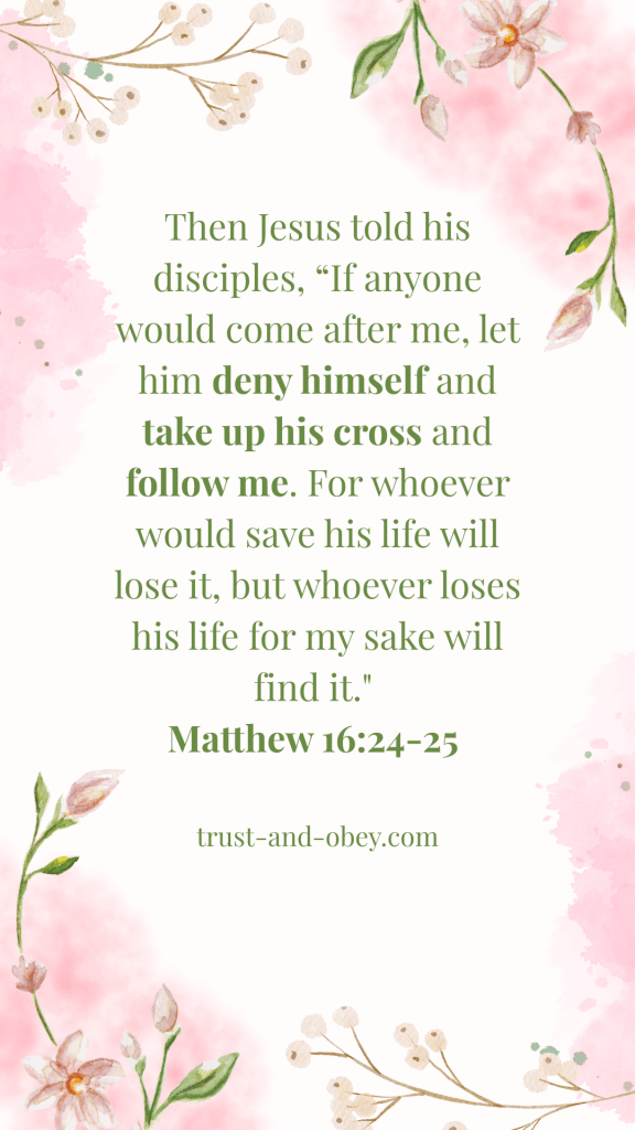 It’s intimidating to commit, but like Peter, we have to do it. There’s no “kind of a Christian” path. We either obey or we disobey. We have to see our need for Christ as more important than loss of independence. We need to pick up our cross and follow him, regardless of the cost.
